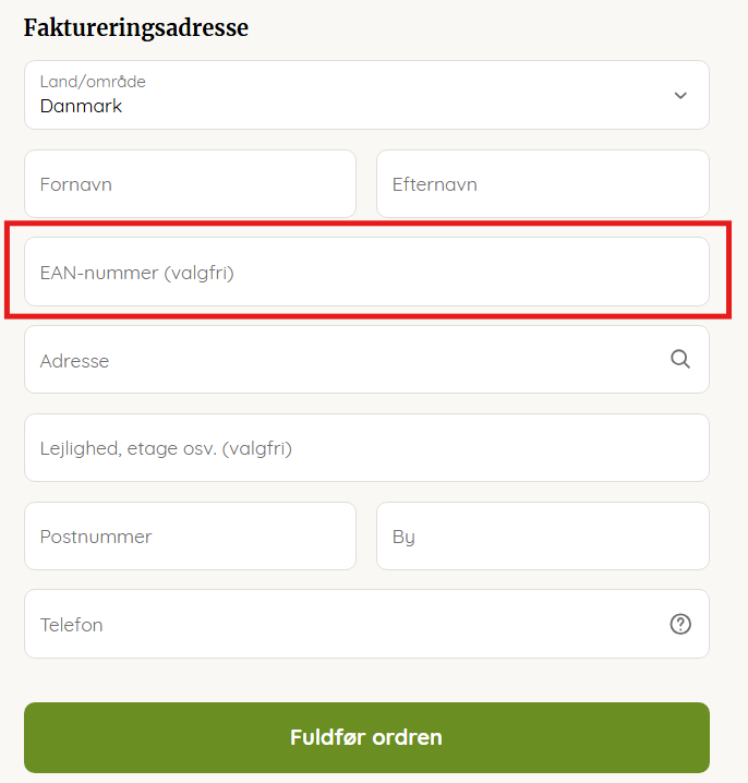 Når du går til kassen, vælger du blot “Betal med EAN-nummer” og indtaster det 13-cifrede nummer blandt de andre kundeoplysninger.